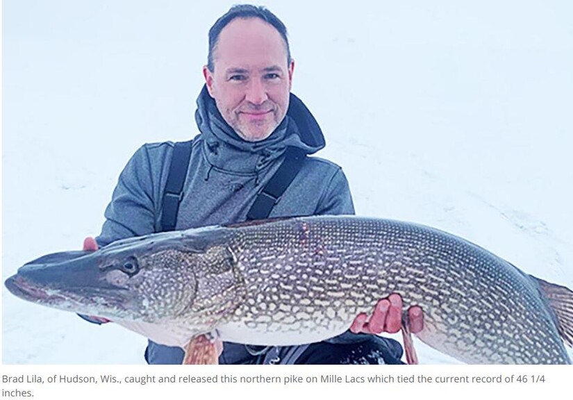 Brad Lila caught and released a 46 1/4 inch northern pike on Mille Lacs Lake that the Minnesota Department of Natural Resources certified as a tie with the current catch-and-release state record.