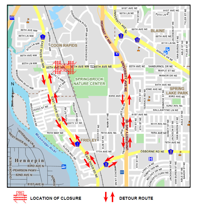 The official detour during the closure uses University Avenue, Osbourne Road and East River Road.