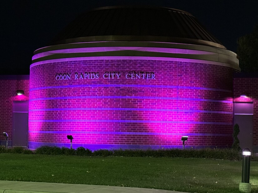 Earlier this fall, the Anoka County Board adopted a resolution proclaiming October as Domestic Violence Awareness Month, underscoring the county’s commitment to combating domestic abuse and honoring victims and survivors. Municipal buildings across Anoka County — including in Coon Rapids — are now glowing purple as part of that commitment.