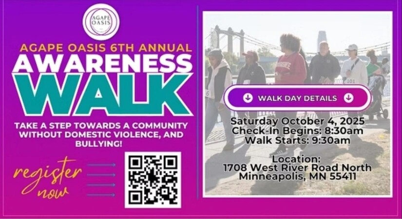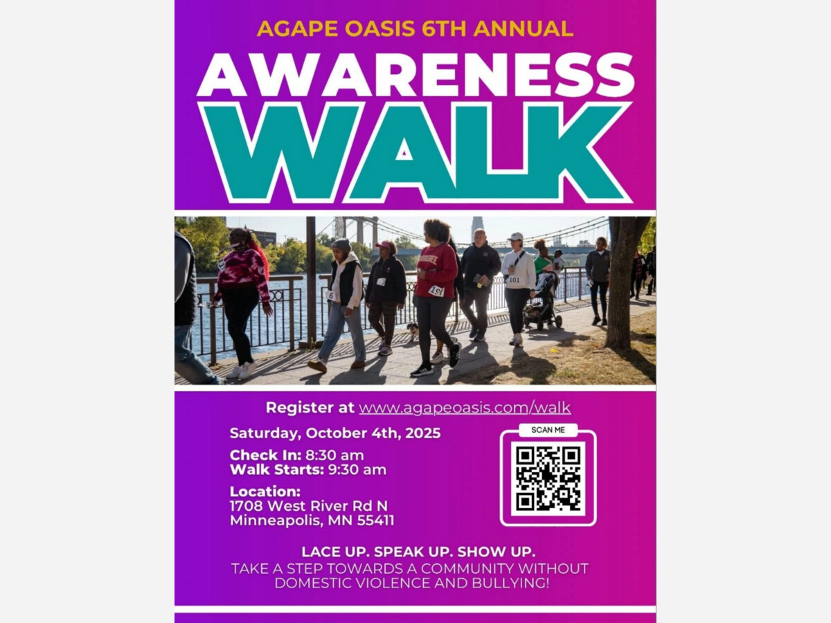 MINNEAPOLIS, MN — Agape Oasis, a North Minneapolis–based nonprofit dedicated to strengthening families and restoring communities is hosting its 6th Annual Awareness Walk on Saturday, October 4, 2025, uniting community members in a visible stand against domestic violence, bullying, and breast cancer.