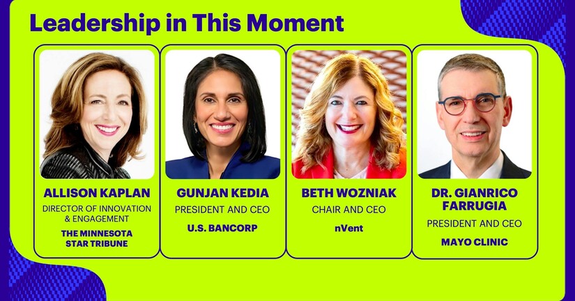 At the Walker Art Center, Gianrico Farrugia, CEO of Mayo Clinic; Gunjan Kedia, CEO of U.S. Bancorp; and Beth Wozniak, CEO of nVent Electric, shared how AI is transforming their industries — from hospitals and financial systems to data centers — while stressing that leadership and human values remain central to the technology’s promise.