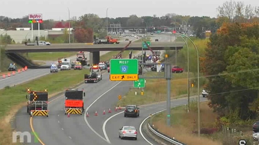 “Unfortunately, the pedestrian bridge was too tall for an overpass on Highway 65, and it struck the bridge overpass as it was being transported to Coon Rapids,” Carlson said in a public statement. “The good news is that even with a secondary crash, there were no injuries. The pedestrian bridge was damaged, so there’s no doubt this will set things back.”