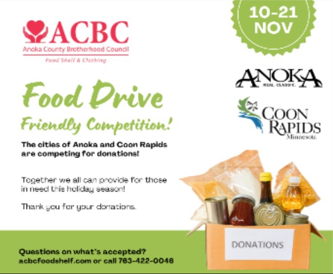 COON RAPIDS, Minn. — November 7, 2025 — In a spirited show of civic pride and community compassion, Coon Rapids Mayor Jerry Koch has launched a friendly food drive challenge against Anoka Mayor Erik Skogquist to support the Anoka County Brotherhood Council (ACBC) Food Shelf. The intercity competition, announced by the City of Coon Rapids, aims to see which city can collect the greatest total weight of non-perishable food donations to help local families in need this holiday season.