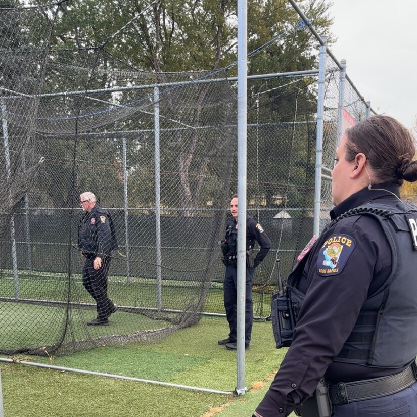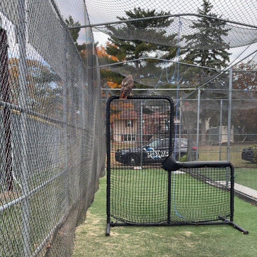 With no standard animal rescue tools immediately available, officers improvised — using a pair of handcuffs to secure the batting cage netting high enough to create a safe opening. The clever maneuver gave the hawk the space it needed to spread its wings and fly free.