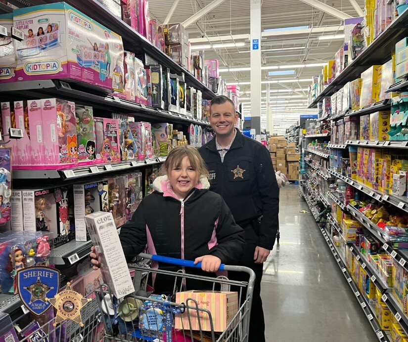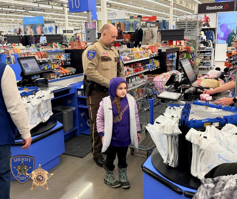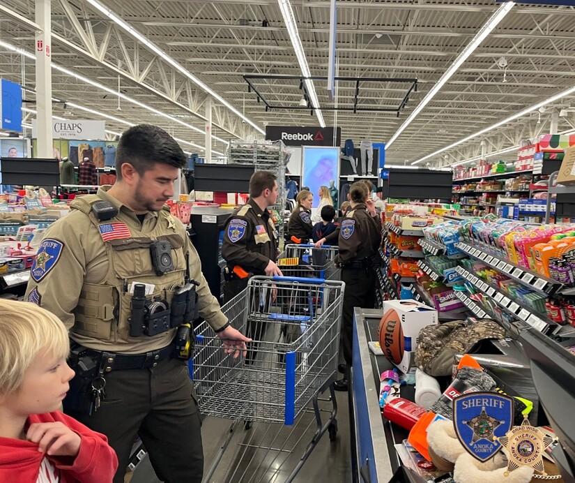 On the day of the event, students were transported from their schools to the Walmart Supercenter in Andover, where each child was paired with an Anoka County Sheriff’s Office employee who served as their shopping partner. Together, they worked through the students’ holiday lists, selecting gifts and essential items.