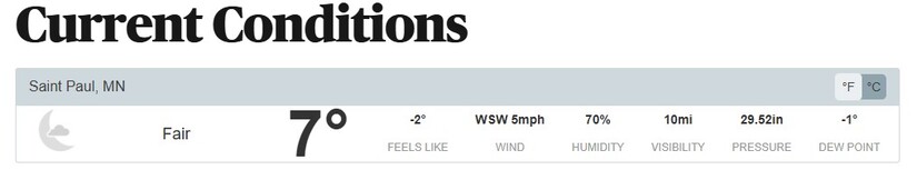 Daytime highs on Saturday varied widely by region, reflecting the timing of the frontal passage. The Twin Cities peaked near 21 degrees before temperatures fell rapidly. Moorhead struggled to reach the upper single digits, while International Falls remained near 7 degrees, reinforcing the north to south gradient of the cold air mass.