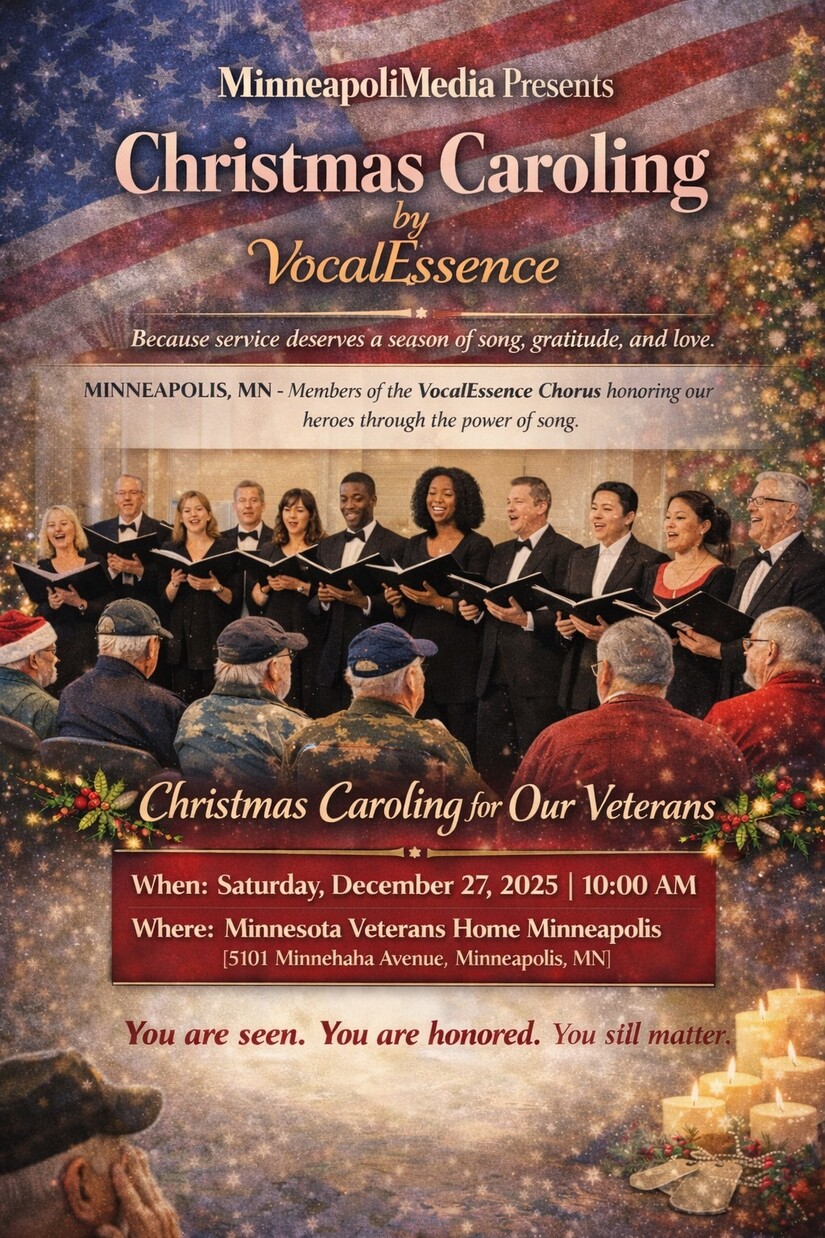 On Saturday, December 27, 2025, MinneapoliMedia will host "Christmas Caroling for Our Veterans," a special holiday tribute featuring the world-renowned voices of the VocalEssence Chorus. In a season often defined by bustle, this event pauses to offer a moment of pure, harmonic gratitude to the men and women who once stood watch for our freedoms.