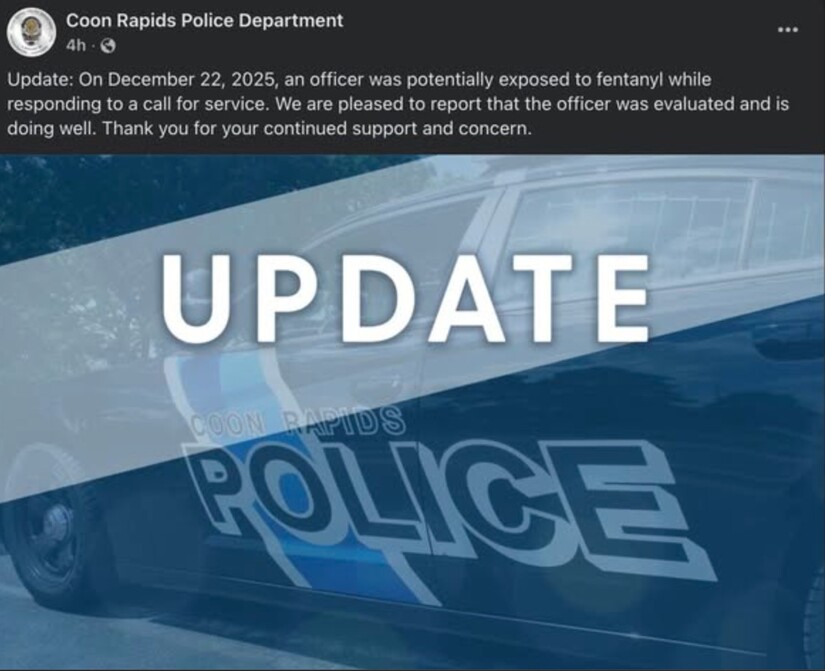 The Coon Rapids Police Department reported that a police officer was potentially exposed to fentanyl while responding to a call for service on Monday, December 22, 2025, prompting an immediate medical evaluation. In an official update released by the department, authorities said the officer was assessed by medical professionals and is doing well, with no reported long term injury.