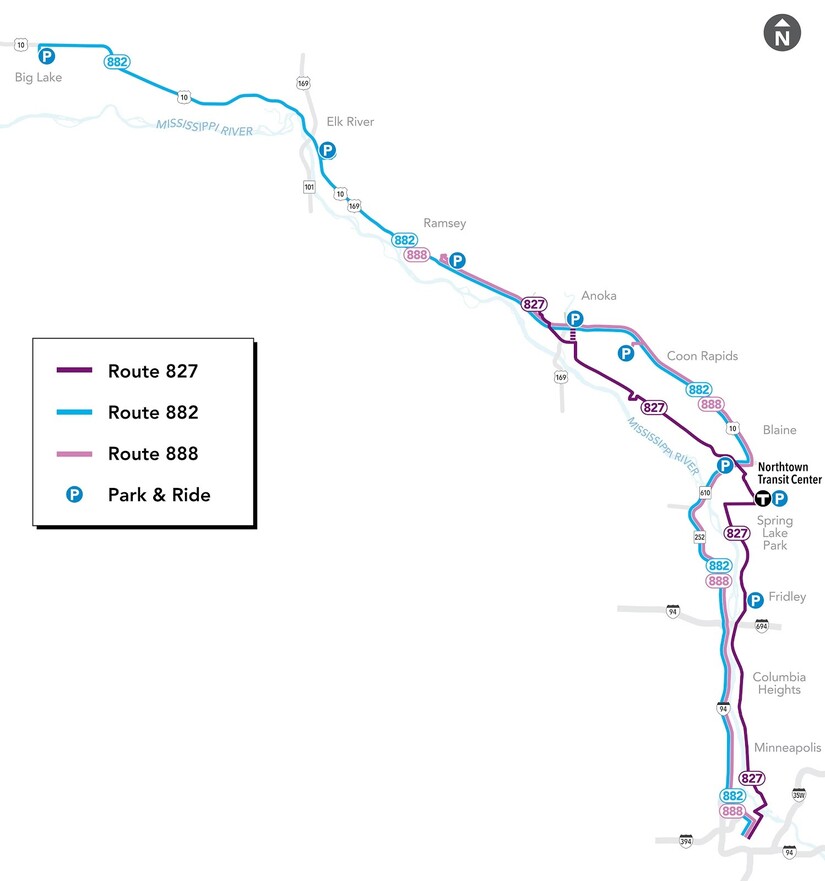Buses will continue to serve existing Northstar Park and Ride facilities in Big Lake, Elk River, Ramsey, Anoka, and Coon Rapids. Fridley is the exception, with boarding relocated to East River Road rather than the former station area.