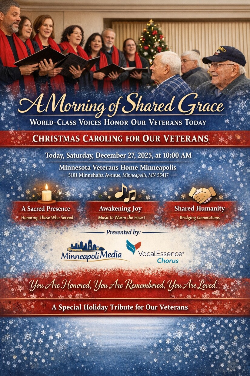 MINNEAPOLIS, MN - Today, Saturday, December 27, 2025, at 10:00 AM, the halls of the Minnesota Veterans Home Minneapolis are being filled with more than just music. In a quiet act of communal devotion, MinneapoliMedia is joining hands with members of the VocalEssence Chorus to offer a simple, heartfelt gift to those who once stood watch for us all: the gift of song.