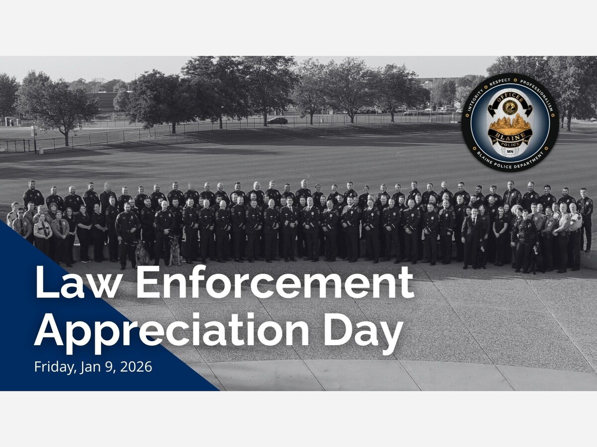 Each year on January 9, communities across the United States observe National Law Enforcement Appreciation Day, a moment set aside to recognize the officers, civilian professionals, and volunteers who carry the daily responsibility of public safety. In Blaine, that recognition centers on the Blaine Police Department, a full service law enforcement agency serving one of Minnesota’s largest and fastest growing cities.