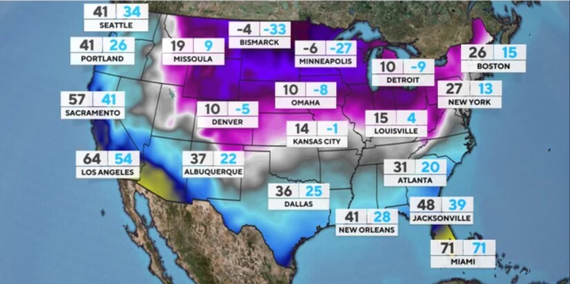 When strong winds accompany such cold air, the effect on exposed skin can be brutal. According to the National Weather Service, wind chill values in parts of northern Minnesota are forecast to drop into the -40s and -50s, levels at which frostbite can occur rapidly. In the most exposed areas of the northern Plains and central Canada, wind chills approaching -60°F are possible, a threshold considered life-threatening.