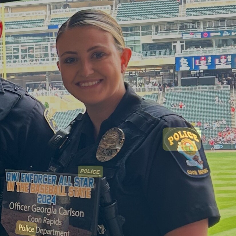 Carlson joined the department in early 2023 after three years with the Lino Lakes Police Department, bringing with her a background rooted largely in night-shift patrol, where officers often encounter people at their most vulnerable. Over the course of her career, she has served as a DWI Enforcement Officer, a Field Training Officer, and now as a member of the department’s Community Oriented Policing and Problem Solving unit, a specialized arm of the department dedicated to prevention, trust-building, and long-term solutions.