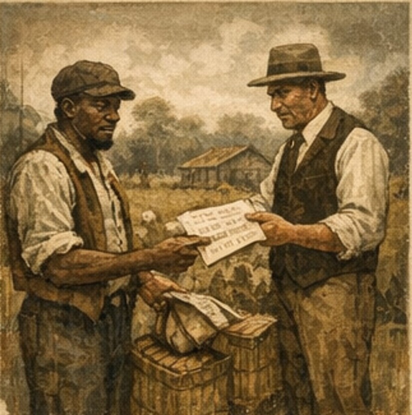 Sharecropping was widely presented as a compromise. Landowners possessed land. African American families possessed labor. On paper, the system promised autonomy. In practice, it often produced a cycle of debt that families could not escape.