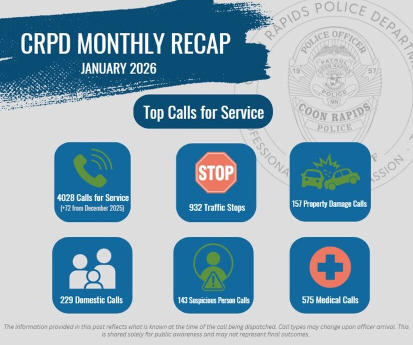 The deeper takeaway from January’s recap is not the volume of calls, but their variety. Public safety in Coon Rapids is not defined solely by crime. It is defined by medical emergencies answered in minutes, domestic disputes calmed without violence, crashes cleared in dangerous conditions, and residents who pick up the phone because they believe someone will come.