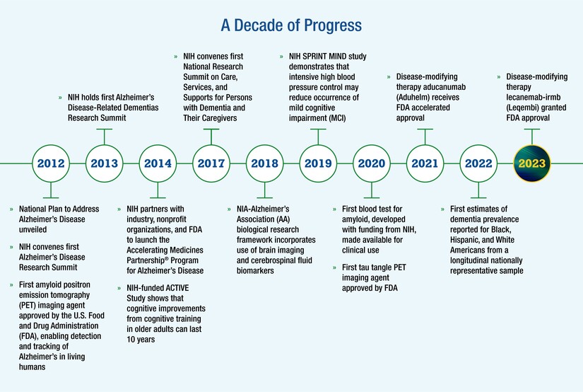 2020s: Antibody therapies modestly slow decline in some patients, while concerns remain about side effects, cost, and access.
