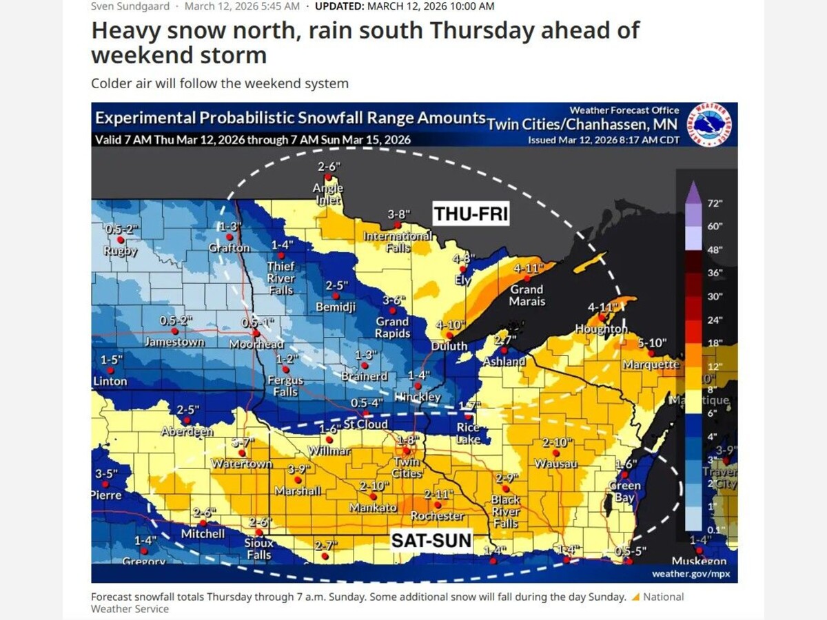 Minnesota is preparing for a two-part weather pattern that will bring rain, heavy snow, and strong winds to the region, followed by another potentially significant snowstorm over the weekend.