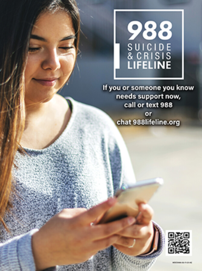 “Anybody who is struggling needs someone to talk to,” Mische said, emphasizing the simplicity of access. “Call, chat, text 988.”