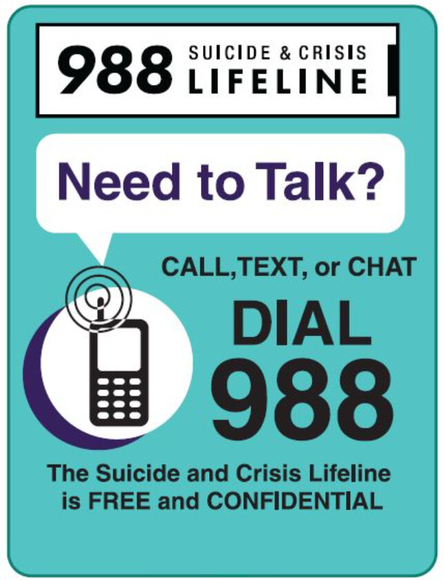 Call or text 988, or chat via 988lifeline.org
