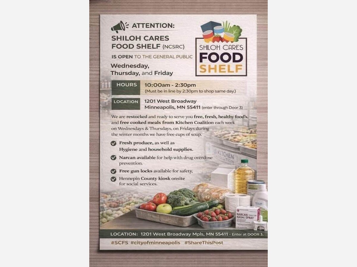 Shiloh Cares Food Shelf operates as part of Shiloh Temple International Ministries, which has expanded its facilities in recent years to support broader community needs in North Minneapolis.