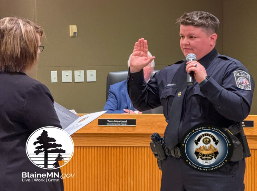 The department also held a swearing-in ceremony this week for three new officers. Thomas Shields, Jackie Groshens, and Braden Olmstead took their oaths of office in the presence of family members, colleagues, and department staff.